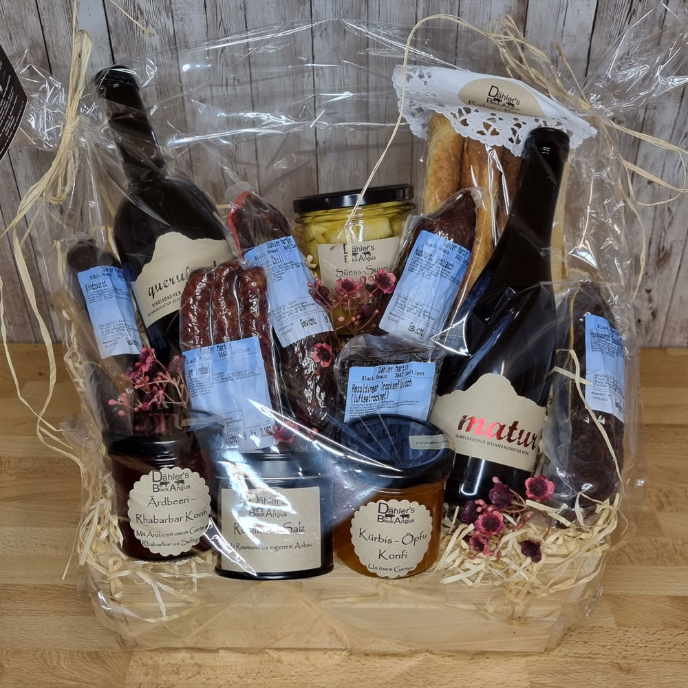 Grosser Geschenkkorb mit Spezialitäten aus der Region